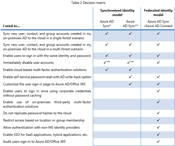 Basis dafür ist eine durchdachte (föderierte) Identity Management Lösung, die sich gut in die Unternehmens-IT integriert. Microsoft bietet hierfür mehrere Wege als “Brücke” zwischen dem eigenen Windows Netzwerk mit dem Active Directory (AD) und der Microsoft Cloud und Azure Active Directory (AAD) an – und damit zur Nutzung Office 365 und dessen Services.