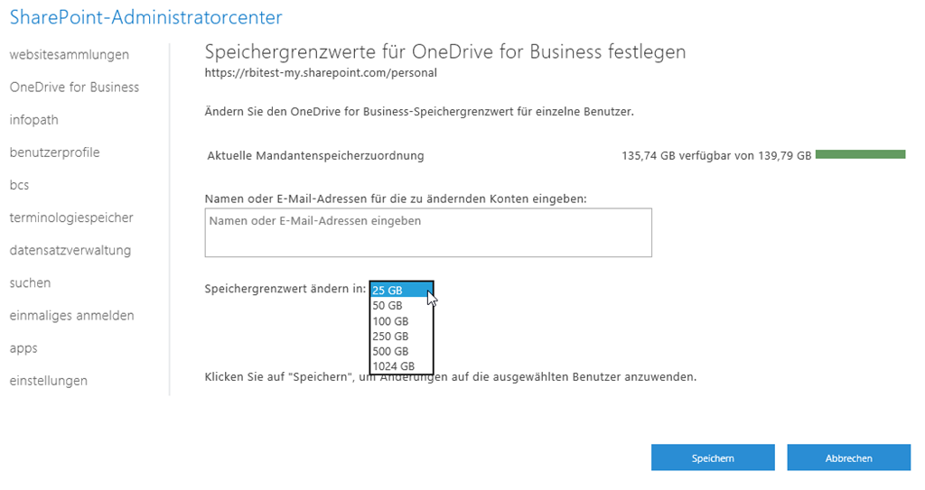OneDrive for Business: 25GB Standardmäßig, erweiterbar auf 1TB
