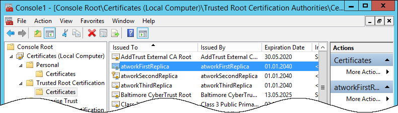 certutil -addstore -f Root "mycompanySecondReplica.cer"