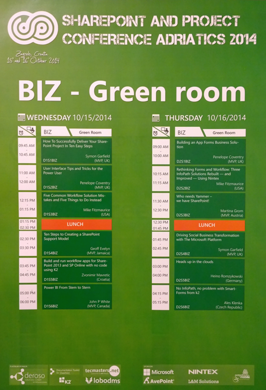 So SharePoint and Project Conference Adriatics 2014 is over now (15th to 16th October). We, @magrom and @atwork, had a really great time at SPC Adriatics 2014 - as always ;). It was our third SPC Adriatcs and we enjoyed the hospitality and meeting so many friends and colleagues from all over the world. There were about 200 attendees and about 30 speakers from 17 countries enjoying the conference in Zagreb, Croatia (see our conference announcement here).
