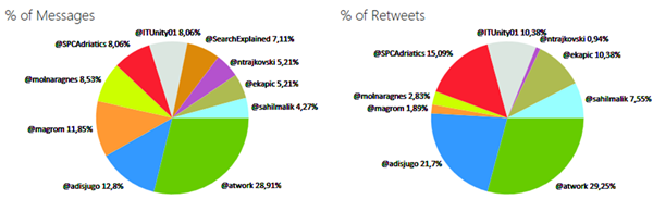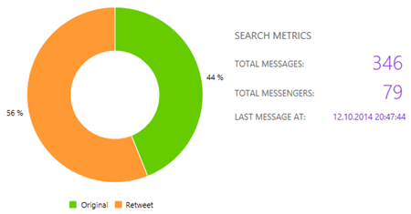 Here´s some data from Twitter made with PlusOneSocial Tool. In the last week there were 346 tweets made by 79 people. 56% of the messages were retweeted.