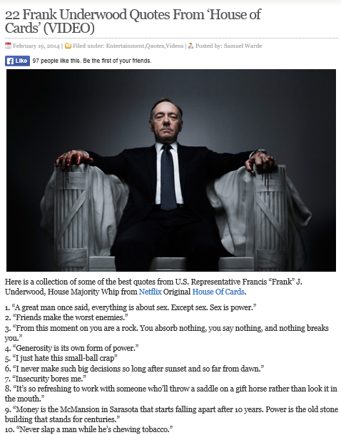 and Mashable.com: 10 Memorable ‘House of Cards’ Quotes