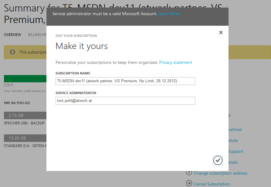 Um es klar zu machen: Die Azure-Verwaltung mit einem Microsoft-Konto funktioniert dann genauso wie zuvor.