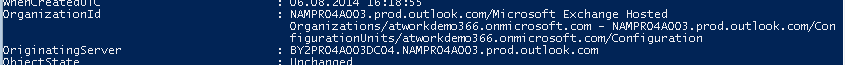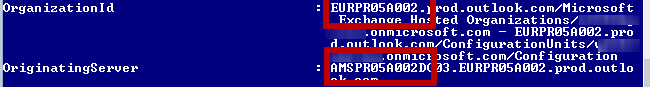 Now you can see under OrganizationID and Originating Server, where the Tenant is and even where your Mailbox is stored.