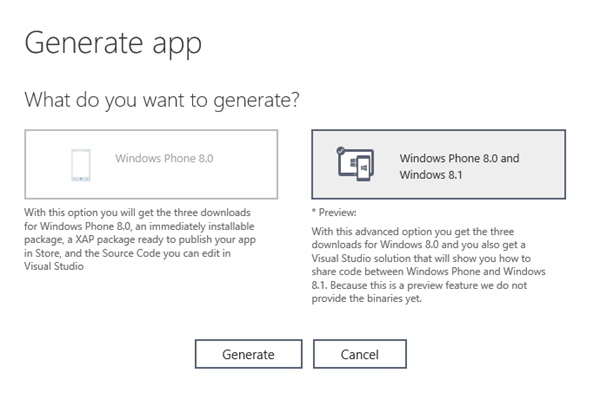 Wenn man den generierten (Preview) Source Code lädt, erhält man zwei Projekte – fürs Phone und für Win 8.1: