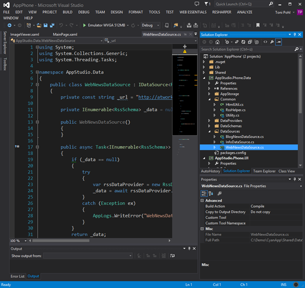 Full Microsoft Visual Studio Project – mit Unterstützung für Windows Phone UND eine Windows 8 Version der eigenen App!