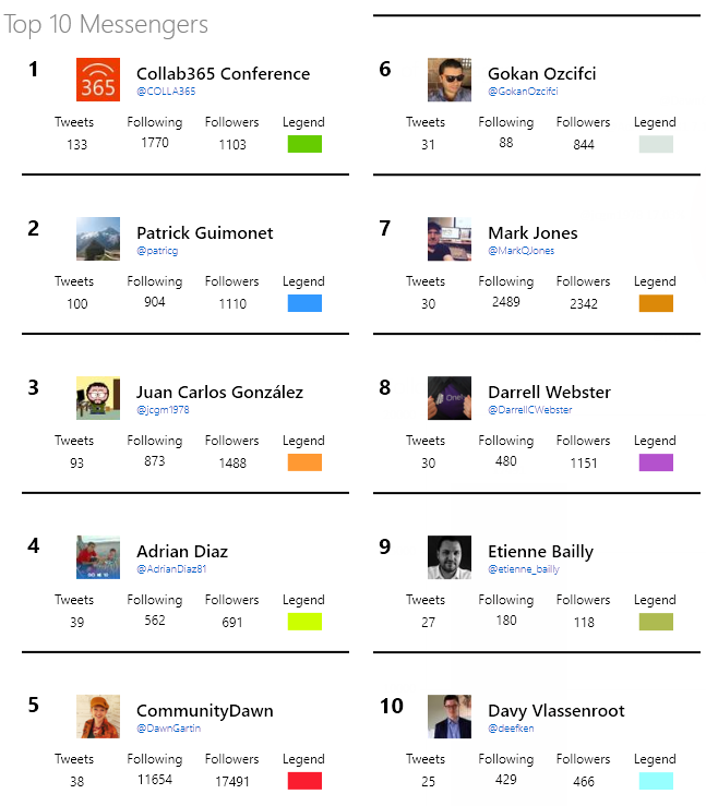Top hashtags were (besides #collab365): #sharepoint, #office365, #azure…