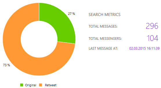 In the last two days there were almost 300 tweets by more than 100 users, with 73% retweets.