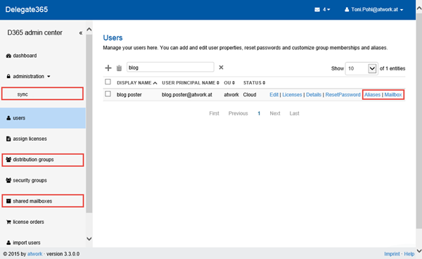 This new service relates to the Exchange operations in D365 which currently are: Users Aliases, Users Mailbox, the sync function as well as the distribution groups and shared mailboxes management. The corresponding functions are marked red in the following screenshot.