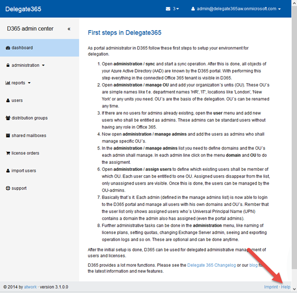 The Help page (linkt in the right bottom corner) now shows the first steps for portal admins to have a quick step-by-step list a at glance for taking D365 into operation after the setup.