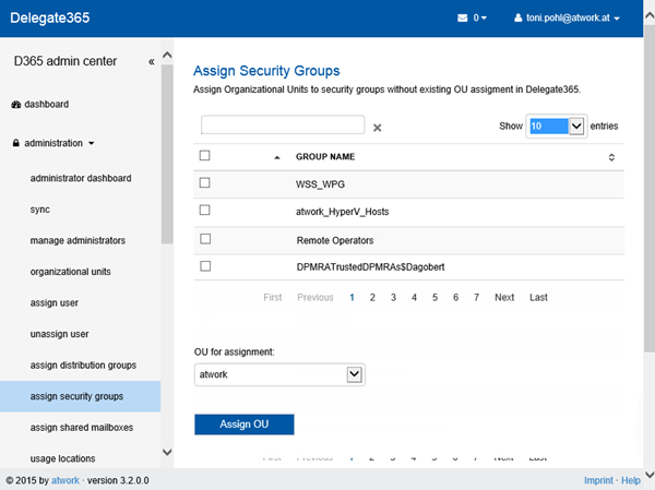 With D365 version 3.2 there comes full support of security groups with two new modules: security groups for managing these groups and memberships and the new administration / assign security groups module for assigning existing security groups to a particular OU.