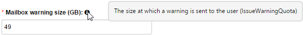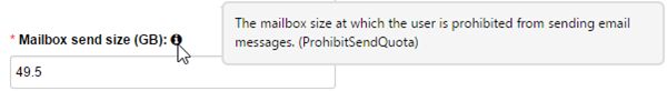 There are also some info icons who show additional tips for the user mailbox properties, as shown here in the screenshot.
