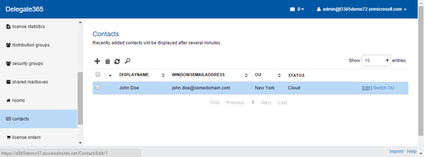 In previous versions the user needed to be created first and MFA could only be activated later with editing.Contacts: have been added and work with the same OU security concept as all other objects in D365. The list shows all contacts within the same OU as the admin.