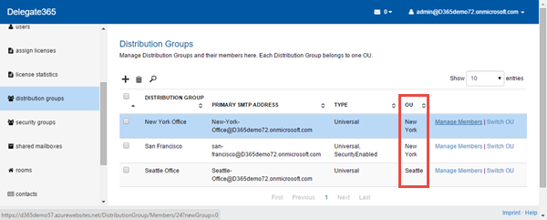**There has been an important change in version 3.5: Before this version group members could only be selected from the same OU as the group itself. For example in this following screenshot admins could only assign members from the OU “New York” to the the distribution list “New York Office” – because the filter was strict on the OU of the group.