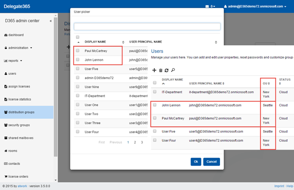 In this sample we can select users from all my OU’s (New York, Seattle, …), so we can select Paul (in OU “New York”) AND John (who is in OU “Seattle”).