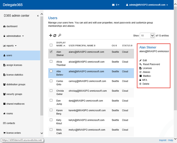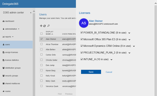 Enjoy the simplicity of user and license management with Delegate365!