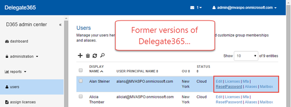 Mark or unmark any selection by clicking somewhere in the row…Before: The old D365 versions used menu links in each line like “Edit, Licenses, MFA,” etc.