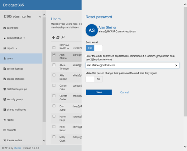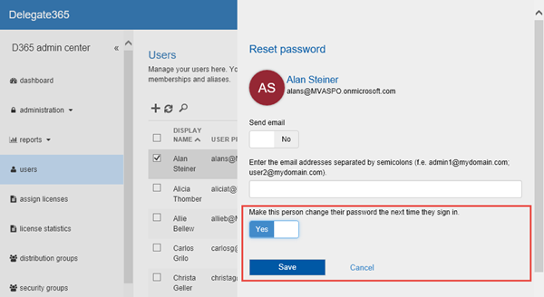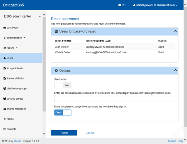 New: User must change his password: In the “Reset password” function admins can now define that users must change their password the next time they sign in.