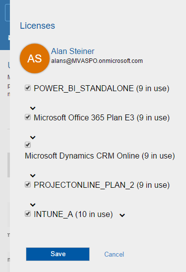 Many operations now make use of the Task Pane for quick and easy managing within the same list page without reloading. See the license settings for a user here.