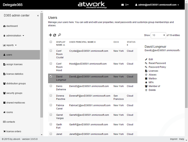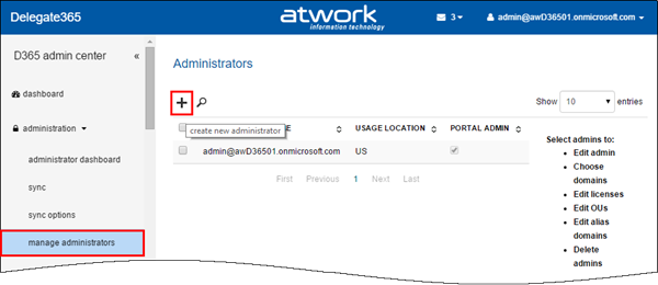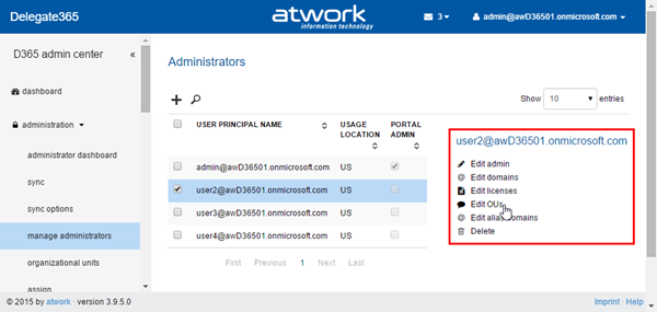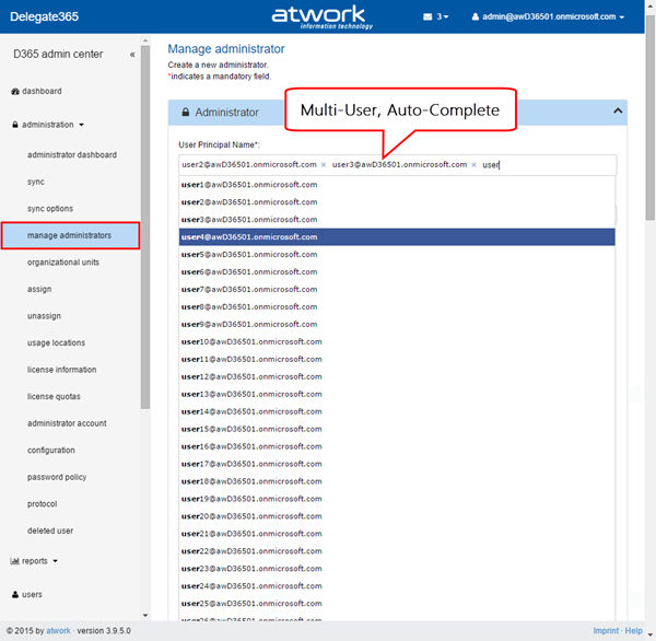 Bulk create admins: When using D365 with many admins it can be some effort to create them. In former versions it was necessary to type (or copy) the UPNs of each admin in the create admin field. The creation of new admins works – as before – on the administration / manage administrators list.