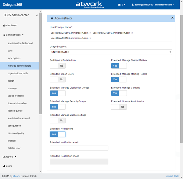 Further improvements are that now all settings can be defined directly below in one step – for all selected admins like shown here.