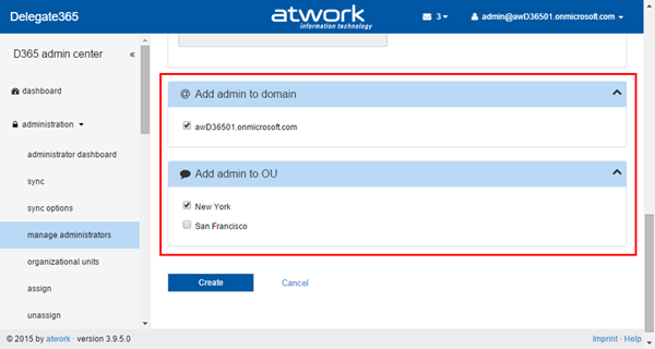 Below there are two more new sections: “Add admin to domain” and “Add admin to OU”.