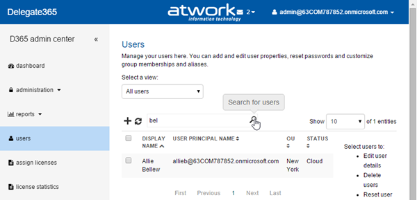 Users list text search: In former versions search worked just for items on the same page. Now D365 test search works for all users regardless on which page the users are shown. So admins receive the search result they expect – all users matching the search expression which means, the UPN or another property shown in the users list must contain the search text.