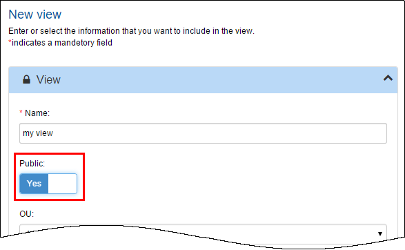 “Public” controls if this will be a public or a private view (see below).