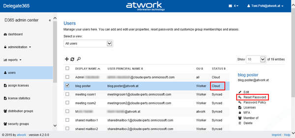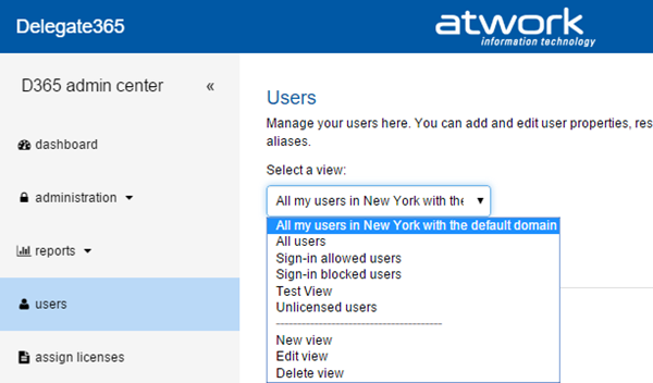 Delegate365 version 4.2 is out. The users list now can be filtered in a better way. The text search has been improved and the list offers system and customizable views for quick and easy filtering. For synced users now there is no Password reset function and Global Admins can restrict if admins are able to create new users. OU Overview delivers all managed objects at a glance. See the details here.