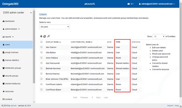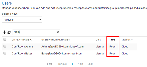 New type information in users list: The users list now got a new column “type” showing the type of the user object in Office 365. Since all “mailboxes” have a user object this column helps admins to see of what type the user is at a glance.
