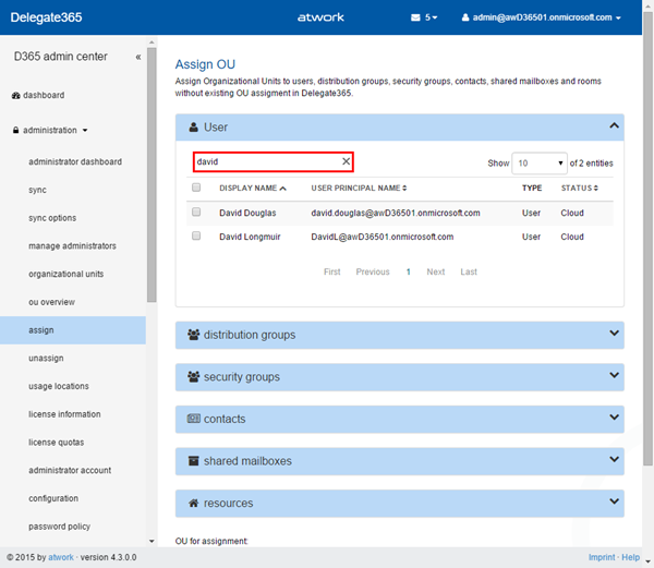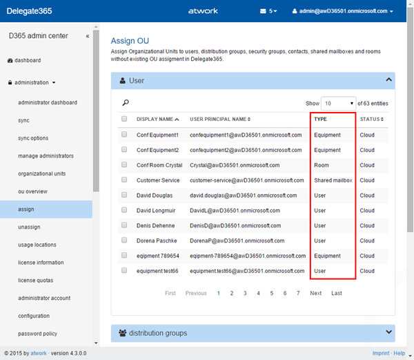 Assign OU: The user “type” column is now also shown in the administration / assign module.