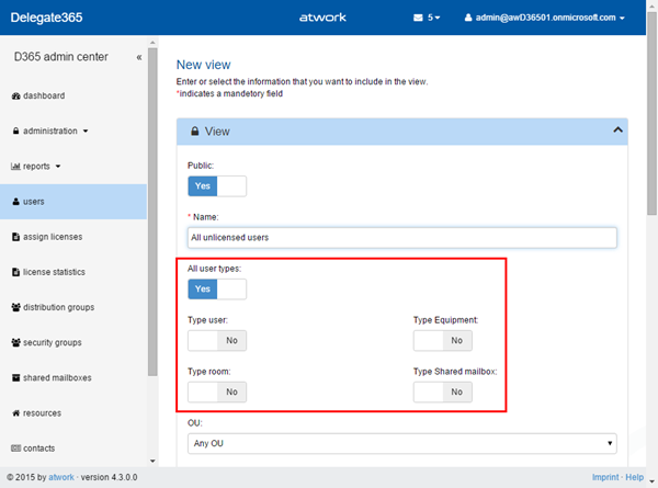 When selecting “all user types” again, the other switches are automatically set to “No” again. Any combination is available here.Custom views depending on the user type: Office 365 creates a user object for each mailbox. So resources (rooms or equipment), shared mailboxes and users are visible in the users list.