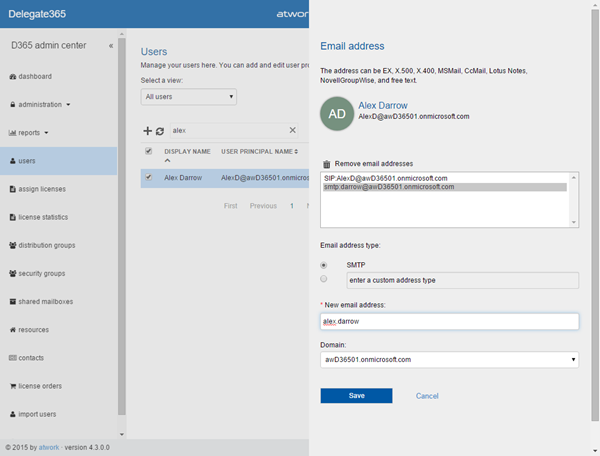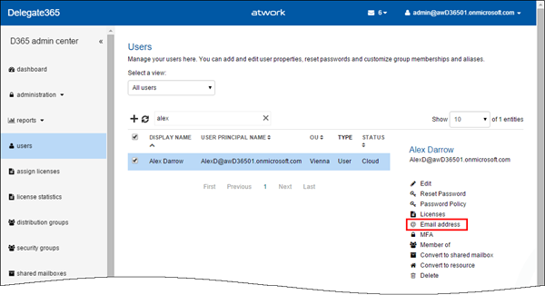 “Save” writes the new EMail addresses of the specific user back to Office 365.