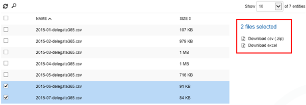 The logfile is opened and provided as searchable and pageable list in D365 .Download multiple files: When selecting more than one file you can “Download CSV (ZIP) or “Download Excel”.