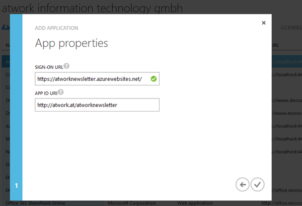 Die Sign-On URL ist die Adresse der Website – bei uns eine Azure Website. Diese ist so konfiguriert, dass sie nach Umleitung zum Office 365 Login wieder zur Website-URL zurückkehrt (Reply-URL).