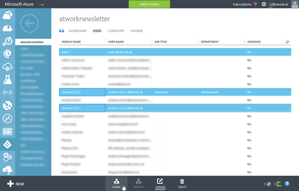 Markieren Sie die entsprechenden Benutzer (mit gedrückter STRG-Taste um mehrere Benutzer auf der aktuellen Seite zu markieren) und klicken Sie danach auf “Assign” im unteren Menü. Verfahren Sie so mit allen Benutzern, welche diese App erhalten sollen.