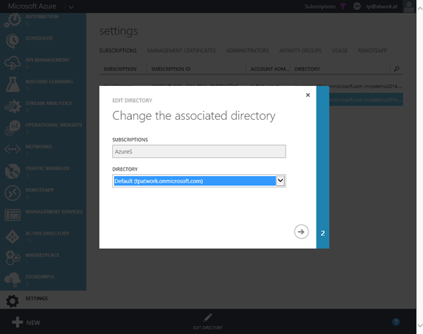 The way is very simple: Select the Azure subscription and click “Edit directory” in the menu below.
