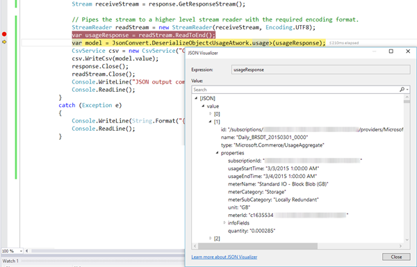 https://management.azure.com/subscriptions/<SubscriptionID>/providers/Microsoft.Commerce/UsageAggregates?api-version=2015-06-01-preview&reportedstartTime=2015-03-01+00%3a00%3a00Z&reportedEndTime=2015-05-18+00%3a00%3a00Z