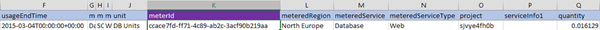 Jede “Usage”-Zeile besitzt eine “MeterId”, das ist eine GUID, etwa wie hier (teilweise):
