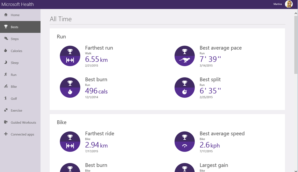 Das Microsoft Band hat sich jedoch auch beachtlich weiter entwickelt. Mit jedem neuen Update wurden Funktionen hinzugefügt bzw. verbessert. Bereits im Dezember hatte ich mir eine Website gewünscht, in der man sich die Daten besser ansehen kann. Heute gibt es dieses Portal schon und es zeigt eine beachtliche Übersicht an Daten, die das Band sammelt. Erreichbar ist das Dashboard hier. Das Dashboard kann auch dazu verwendet werden, langfristige Auswertungen anzusehen und beispielsweise seinen eigenen Fitnesslevel zu überprüfen.