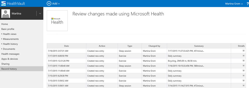 Ich habe Microsoft Health beispielsweise mit Healthvault verbunden, weil es praktisch ist, alle Gesundheitsdaten an einem Ort zu haben.