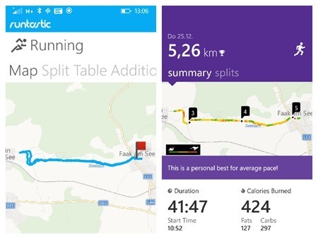 Das Band ist deutlich präziser bei Läufen im Freien: Früher habe ich Runtastic verwendet um meine Läufe zu tracken – wenn ich nun beide verwende um einen Vergleich zu haben sind beide nahezu identisch. Hoffe Runtastic arbeitet auch an einer Integration wie es andere Partner wie z.B. Runkeeper gemacht haben. Für Läufe im freien schalte ich GPS ein, damit wird die Messung wohl auch einfacher (aber mal ehrlich – wer braucht GPS am Laufband?). Im GPS Modus sieht man dann auch eine nette Karte des aktuellen Laufes in der Health App.