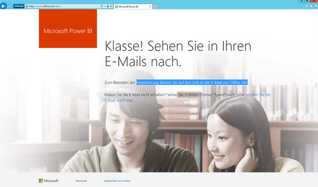 - Ein Benutzer mit der entsprechenden “@contoso.at” registriert sich hier https://www.powerbi.com/