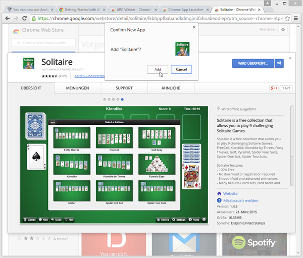 After installing the ARC Welder the App can be started.