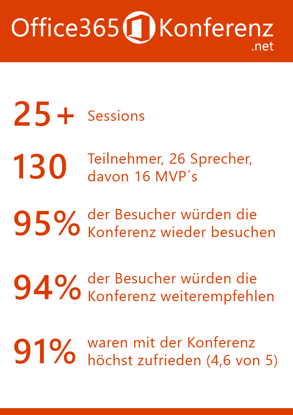 Nochmals Vielen Dank an alle Beteiligten, an die Organisatoren, die Sponsoren, die Sprecher und natürlich an alle unsere Teilnehmer, die die Office 365 Konferenz besucht haben, mitdiskutiert und zu einem tollen Event gemacht haben!