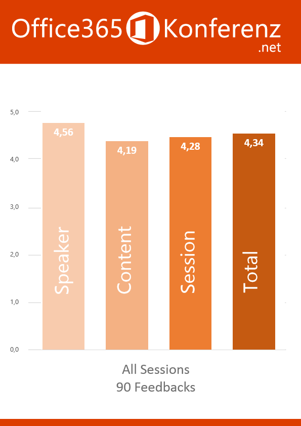 Die Top-Sprecher der Office 365 Konferenz waren Frank Carius (4,9 MVP), Martina Grom (4,8 MVP), Kim Kischel (4,7 Microsoft), Benedict Berger (4,7 MVP) und Anton Schweizer (4,7 Microsoft).