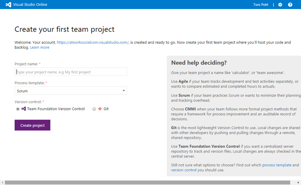 Die eigene VS Online URL lautet dann wie gewählt https://[mycompany].visualstudio.com
