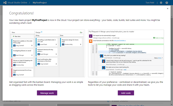 Viel Spaß beim Nutzen und Entdecken von VS Online (mit Organisations-Konten)!