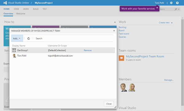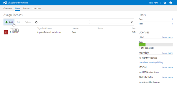 VS Online mit einem neuen Benutzern nutzen
