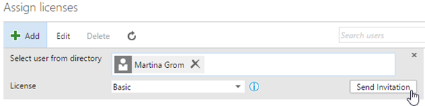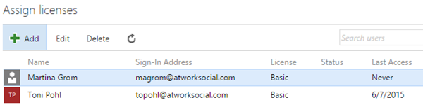 Der neue Benutzer ist per Default natürlich kein Admin, sieht aber alle weiteren Benutzer, das Lizenzmodell (hier: Basic, somit kostenfrei und “2 of 5 users assigned”).
